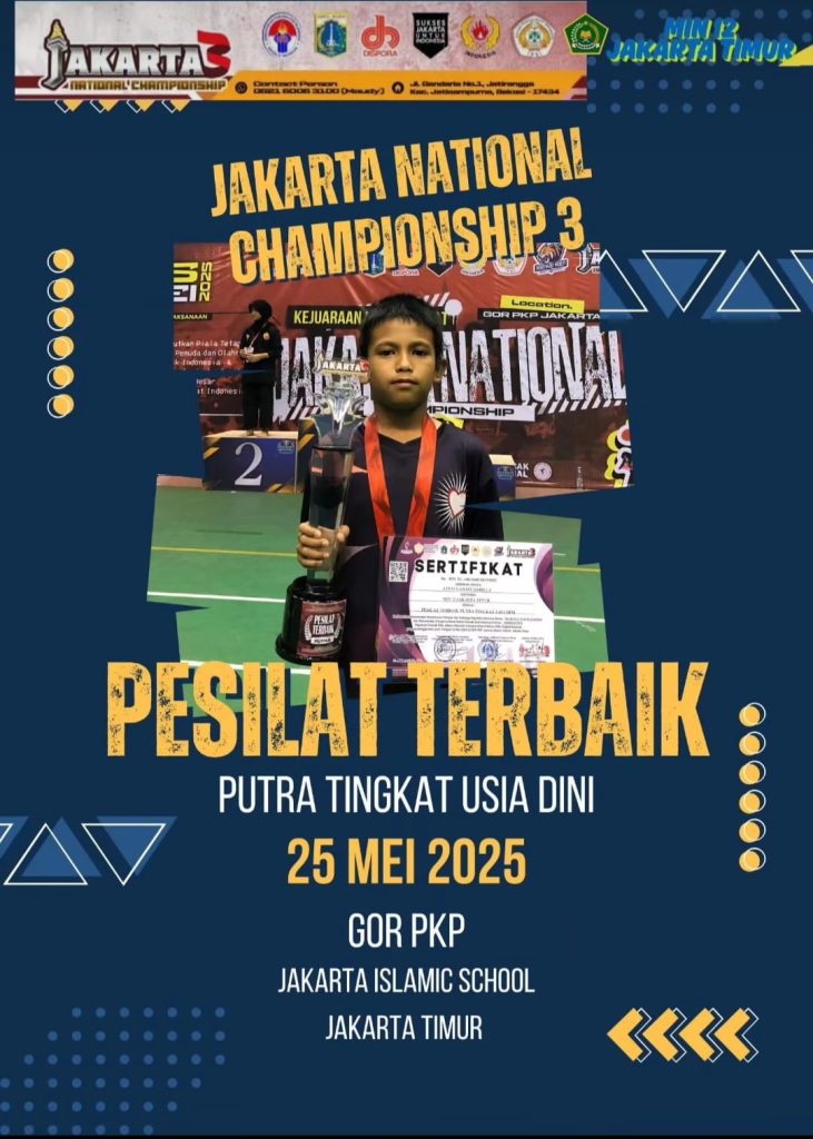 Jakarta (Humas MIN 12 Jakarta) – Siswa MIN 12 menjadi Juara Umum dan Pesilat terbaik di Kejuaraan ”Jakarta National Championship 3” yang diselenggarakan oleh Ikatan Pencak Silat indonesia (IPSI). Kompetisi itu berlangsung Jum’at – Minggu, 23- 25 Mei 2025, di GOR PKP Jakarta Islamic School, Ciracas, Jakarta Timur. Dalam ajang tersebut, para pesilat dari MIN 12 berhasil meraih total 17 medali, yang terdiri dari sepuluh medali emas dan tujuh medali perak. Para peraih medali emas Kategori Usia Dini diantaranya Erlangga Hadi Kusuma, Ahmad Fadli Azis Nasution, Sena Ajie Alfarizqi, Nathaniela Dewi, Alya Hamidah Ahmad, Elviera Aisyahbani, Fakhir Saadat Rizal Azmi, Fatih Ghaizan Putra Rabbani, Athallah Izz Raqillah, dan Muhammad Dafa Ibnu Hafizh. Sementara peraih medali perak kategori Usia Dini diantaranya Raina Azahra Harahap, Naysitha Rianti Dewi, Muhammad Fatihurahman Tauba, Tata Langit Banyu Ramadhan, Muhammad Farish Erdogan, Azmi Haryo Putri, dan Nasywa Nur Azizah.